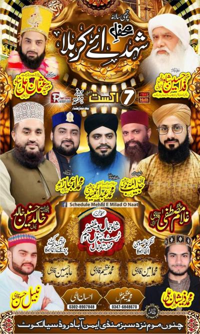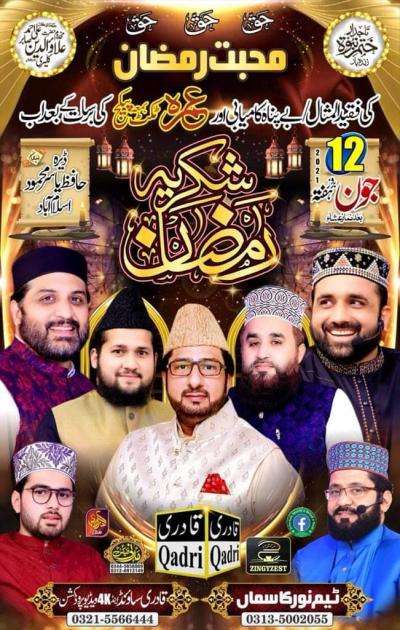 Program Detail : Special address by Qari Moulan Bilal Haider Hasan of Sialkot. Zere Sadarat Qari Noor Husain So of Mandi Baha ud din.