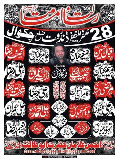 Risalat w Imamat Program Detail : 28th Safar Organizers : Anjuman Ghulaman e Hazrat Abu Talib, Dandot Address : Dandot, Distt Chakwal