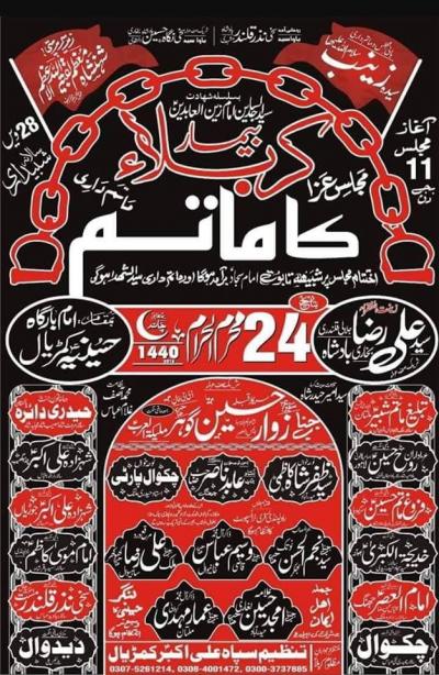 Majlis e Aza Program Detail : 24th Moharram 1440 (5th October 2018) Address : Imam Bargah Hussainia, Kamrial