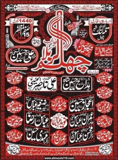 Chehlum Karbala Program Detail : 15th Safar ul Muzafar 1440