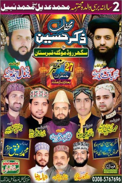 Waseem Abbas, Madah Hussain, Ali Nasir Alhussaini, Nigah e Hussain Address : Darbar Pir Bukhari, Talagang City, Chakwal
