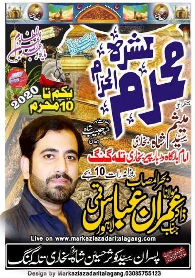 Ashra e Muhrram ul Haram Program Detail : Daily 10pm Organizers : Sons of Syed Kausar Hussain Shah Bokhari Address : Imam Bargah Darbar Pir Bokhari, Talagang