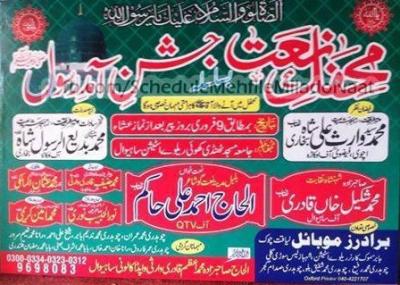 Mehfil-e-Naat basilsila Jashan Aamd e Rasool Program Detail : Monday February 2015 After Isha Prayer