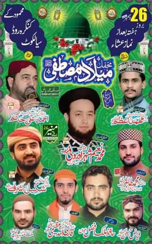 Mehfil e Milad e Mustafa Program Detail : Saturday, 26th December 2020 Baad az Namaz e Isah Address : Mehmood ke, Kingrah Road, Sialkot