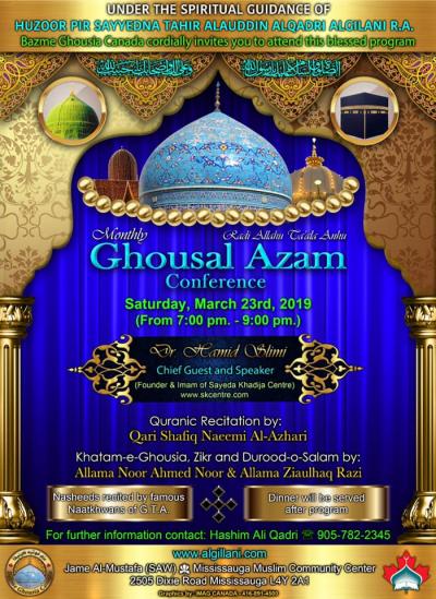 Monthly Ghousal Azam conference Program Detail : Saturday, March 23rd 2019